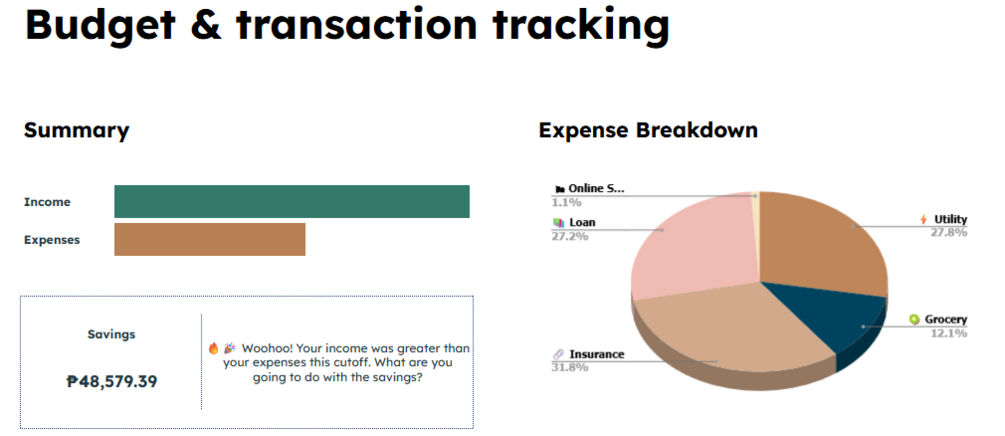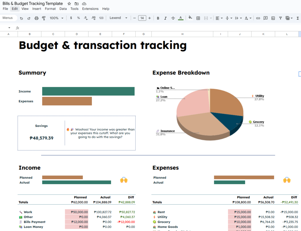 - Visualize your budget summary with automated calculations